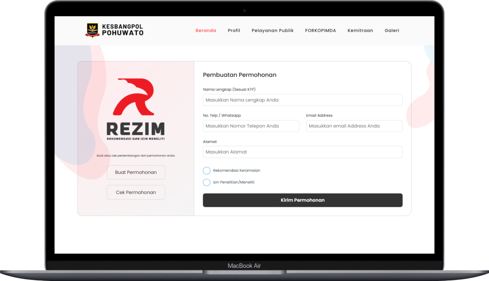 Aplikasi ini hadir sebagai inovasi digital yang mempermudah proses pengajuan surat di Kesbangpol. Kini, pemohon dapat mengajukan permohonan kapan pun dan dari mana pun, hanya dalam hitungan menit.